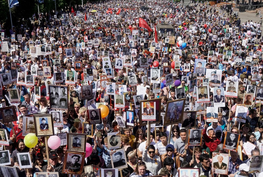 Read morePeople carrying portraits of deceased relatives who took part in World War Two, march in a parade during Victory Day commemorations in Almaty, Kazakhstan, on May 9, 2017. #