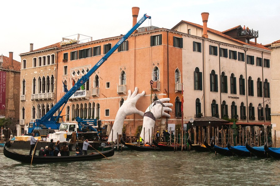 Read moreWorkers finish to prepare the exhibition 'SUPPORT' by Lorenzo Quinn, during the 57th Biennale Arte on May 11, 2017 in Venice, Italy. The 57th International Art Exhibition of La Biennale di Venezia will be open to the public from the June 13 to November 26, 2017. #