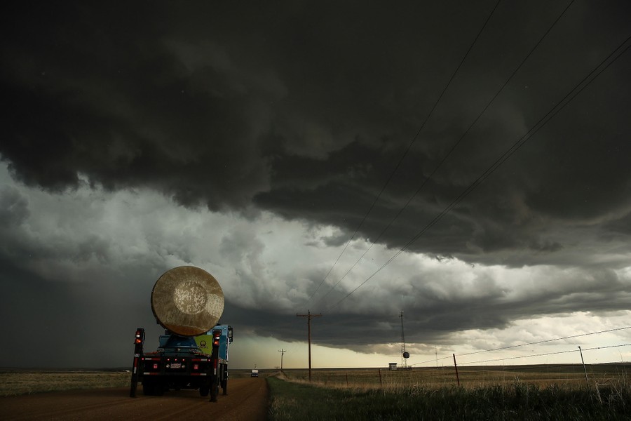 Read moreThe Doppler on Wheels (DOW) vehicle scans a supercell thunderstorm during a tornado research mission, on May 8, 2017 in Elbert County near Agate, Colorado. Doppler on Wheels (DOW) is a mobile doppler radar mounted on a truck that brings instruments directly into storms, allowing scientists to scan storms and tornadoes and make 3-D maps of wind and debris. With funding from the National Science Foundation and other government grants, scientists and meteorologists from the Center for Severe Weather Research try to get close to supercell storms and tornadoes trying to better understand tornado structure and strength, how low-level winds affect and damage buildings, and to learn more about tornado formation and prediction. #