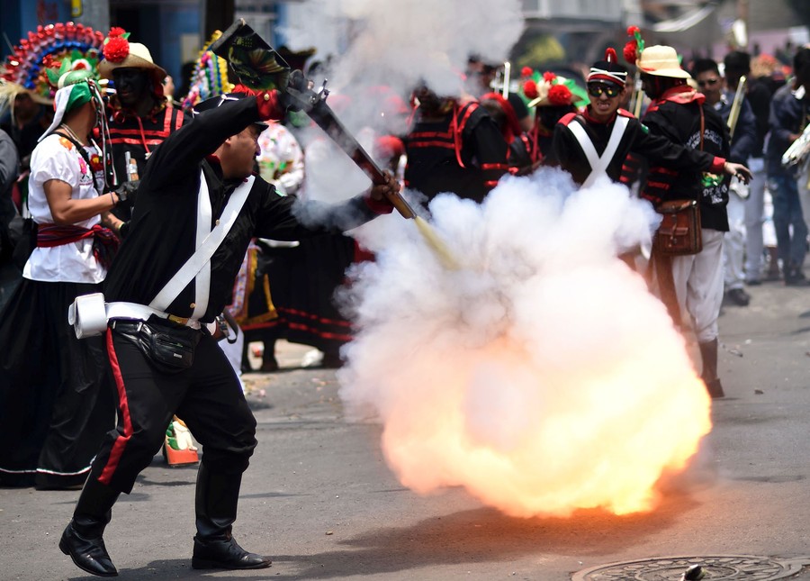 Read moreArtists take part in the reenactment of the Battle of Puebla - Mexico's victory over France in 1862 - during the anniversary celebration at the Penon de los Banos neighbourhood in Mexico City, on May 5, 2017. Although in 1863 France finally took the Mexican capital and installed a five-year regime led by Emperor Maximilian, the Battle of Puebla's importance lies in that it strengthened the Mexican spirit after it prevented Napoleon III from conquering the country in a first attempt. #
