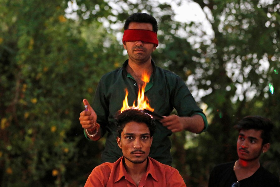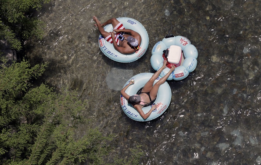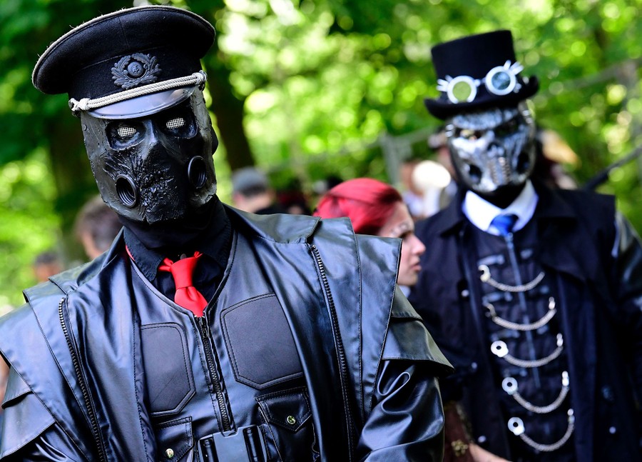 A gothic "Victorian picnic" in Leipzig, floating down a Texas river, continued unrest and protest in Venezuela, a police robot marks the start of Ramadan in Dubai, a metal hijab band in Indonesia, and much more