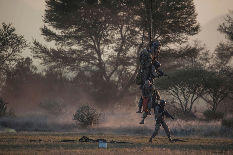 Read moreSouth African National Defence Force personnel take part in a military training exercise at Roodewal Airforce base, in the Limpopo Province, South Africa, on June 1, 2017. #