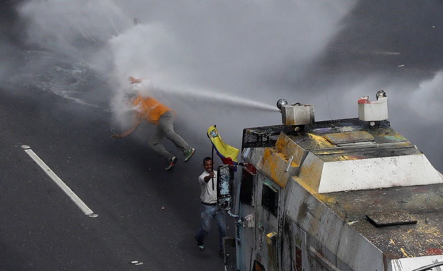 Read moreRiot security forces clash with demonstrators as a motorcycle is set on fire during a protest against Venezuelan President Nicolas Maduro's government in San Cristobal, Venezuela, on May 29, 2017. #