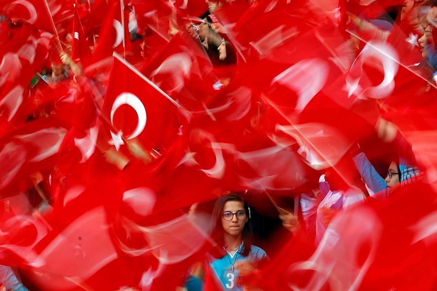 Read moreImam Hatip religious school students wave national flags as they wait for arrival of Turkish President Tayyip Erdogan during a graduation ceremony in Istanbul, Turkey, on May 26, 2017. #
