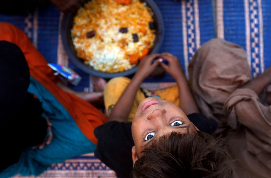 Read moreA boy sits with others as they wait to break their fast at a charity food distribution point along a road during a Muslim holy month of Ramadan in Karachi, Pakistan, on May 29, 2017. #