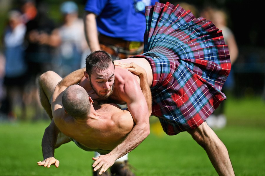 Read moreWrestlers compete in the Inveraray highland games on July 18, 2017, in Inverarary, Scotland. The Games celebrate Scottish culture and heritage with track-and-field events, piping, highland dancing competitions, and heavy events including the world championships for tossing the caber. #