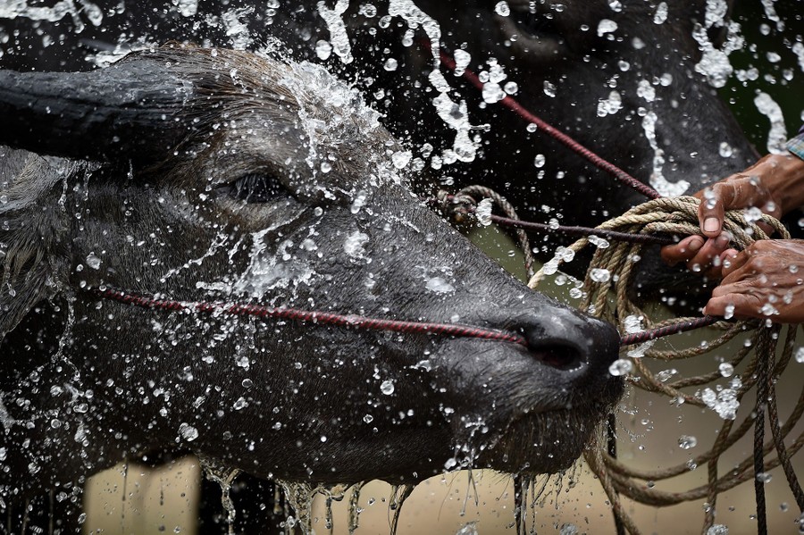 Read moreA buffalo receives a bath in between races in a rice-paddy field during the annual rice-planting festival in Chonburi, Thailand, on July 16, 2017. Languidly plowing flooded paddy-fields, Thailand's buffaloes don't usually strike people as the quickest of beasts. But farmers in eastern Thailand showed off their fastest bovines in a unique, muddy speed test. #