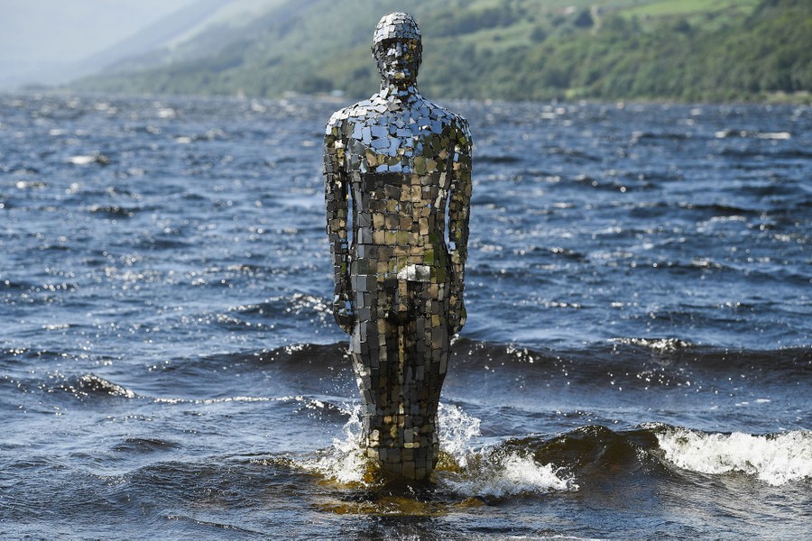 Read moreTourists view the mirror man statue by artist Rob Mulholland in Loch Earn on July 17, 2017, in St Fillans, Scotland. The three-meter-tall sculpture made from mirrored tiles spends winters out of the water due to the inclement weather, returning again in the summer months. #