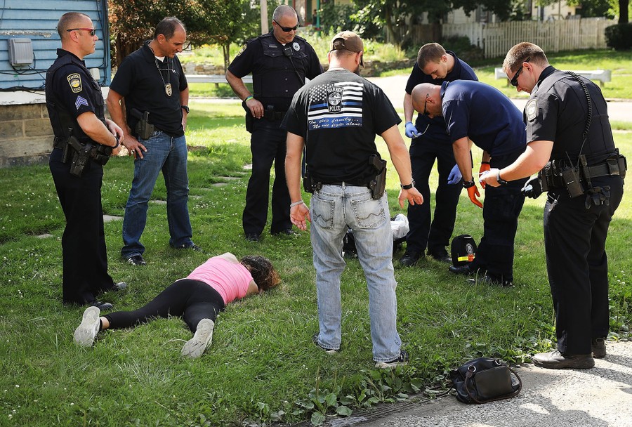 Read moreMedical workers and police treat a woman who has overdosed on heroin, the second case in a matter of minutes, on July 14, 2017, in Warren, Ohio. According to recent statistics, at least 4,149 Ohioans died from drug overdoses in 2016, a 36 percent leap from just the previous year that makes Ohio the leader in the nation's overdose deaths. #