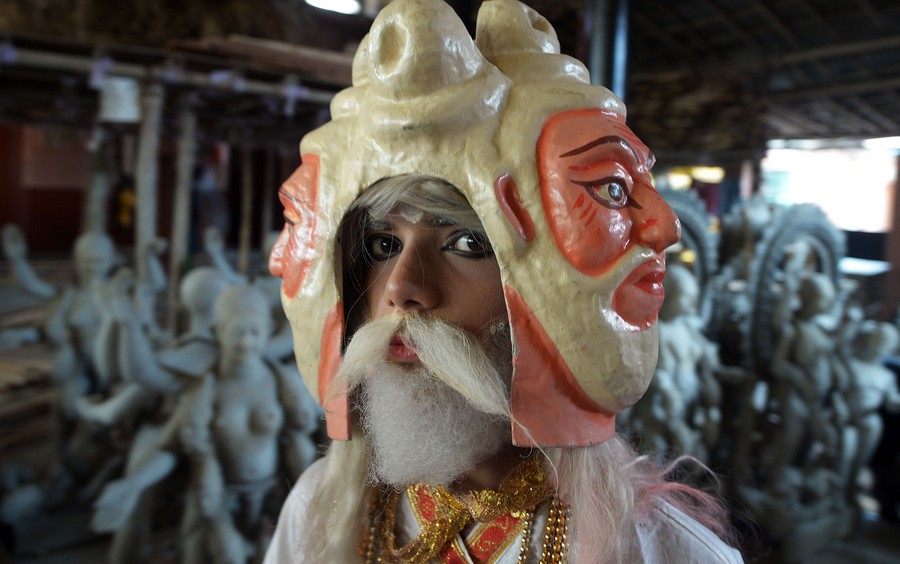 Read moreA young Indian man dressed as the Hindu god Brahma looks on prior to participating in a religious rally to celebrate the Gajan festival in Kolkata on April 13, 2015. #