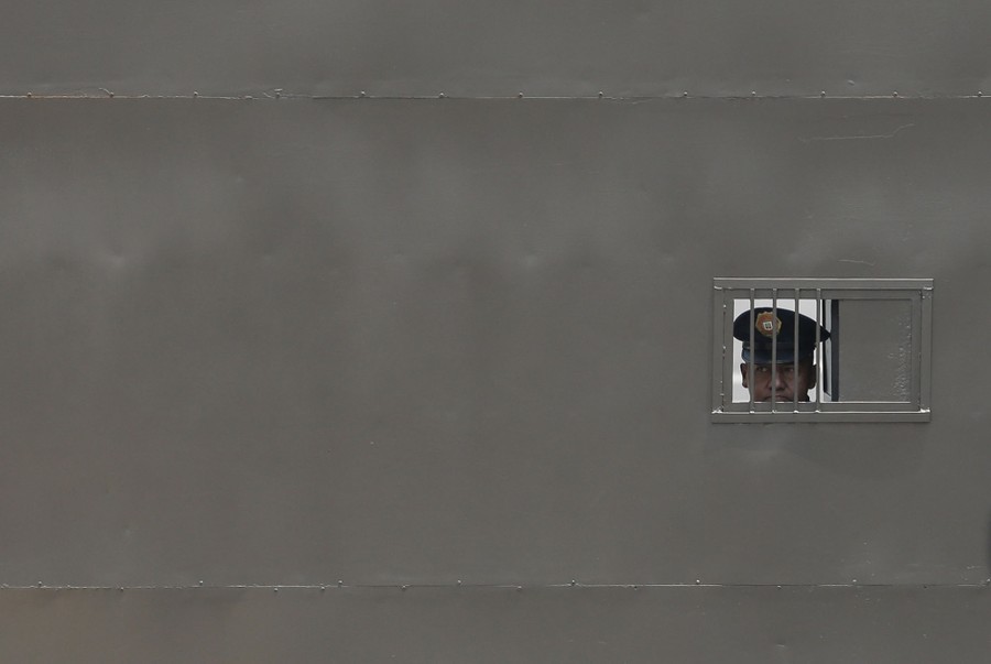Read moreA federal police officer peers out from inside the hangar of the attorney general's office at the Mexico City airport, as former Veracruz State Governor Javier Duarte is processed inside after arriving from Guatemala on July 17, 2017. Duarte, who resigned as governor in 2016, agreed to extradition to his home country to face charges of embezzlement and ties to organized crime. #