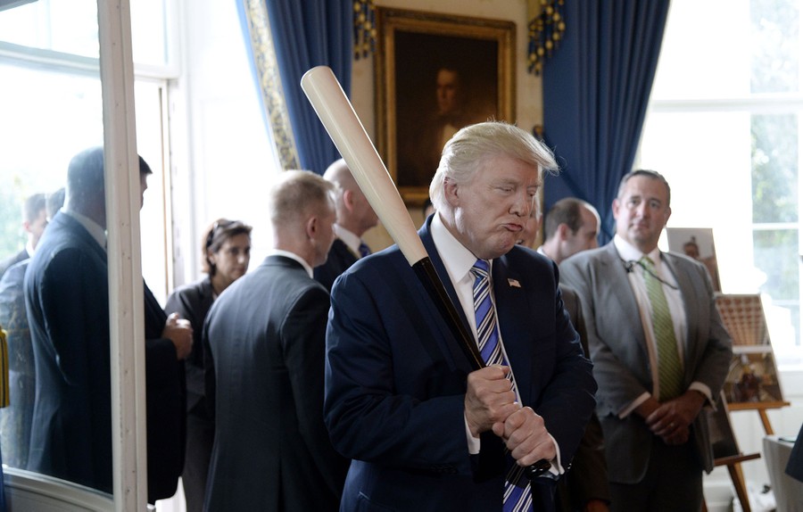 Read morePresident Donald Trump examines U.S.-made products from all 50 states, including a Marucci baseball bat, in the Blue Room of the White House during a "Made in America" product showcase event in Washington, D.C., on July 17, 2017. #