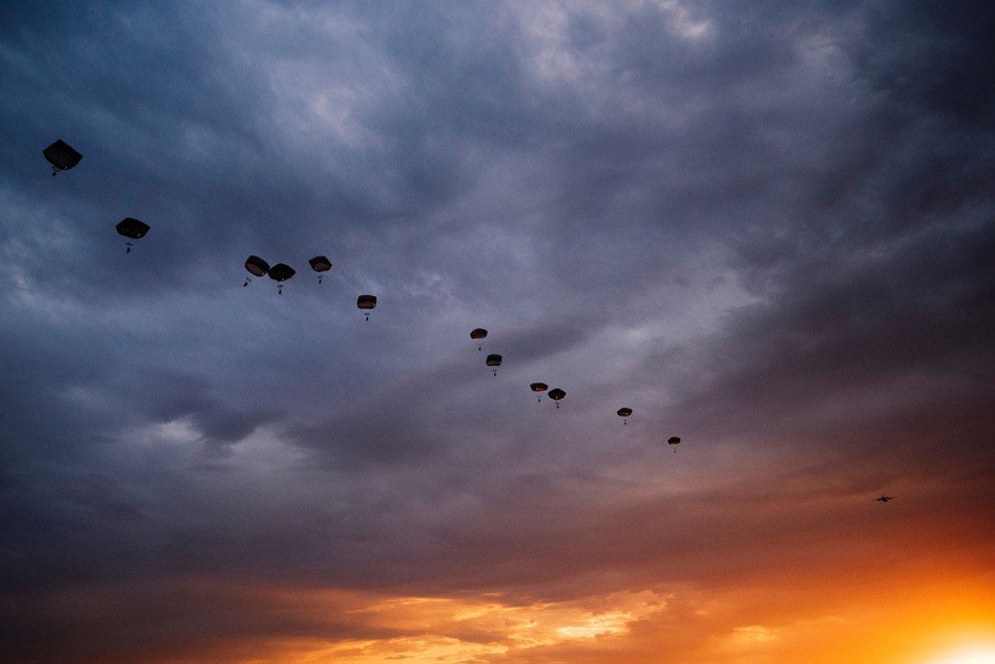 Read moreNATO paratroopers drop out of a U.S. Air Force Hercules during the Swift Response 17 joint airborne military exercise near the village of Bezmer, Bulgaria, on July 18, 2017. #