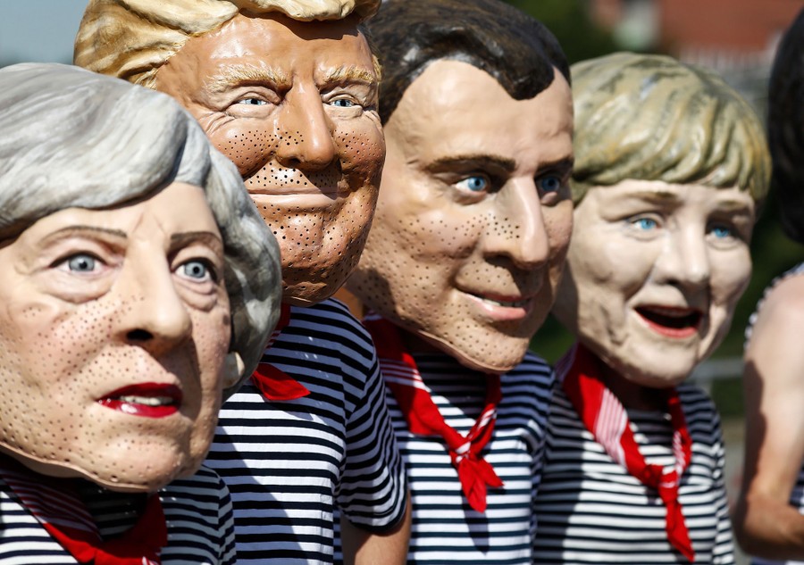 Read moreAnti-capitalism activists don masks of British Prime Minister Theresa May, U.S. President Donald Trump, French President Emmanuel Macron, and German Chancellor Angela Merkel during a protest on July 6, 2017, in Hamburg, Germany, where leaders of the world's top economies have gathered for a G20 summit. #
