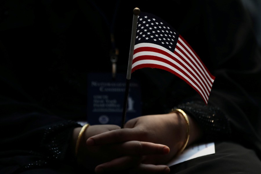 Read moreAn immigrant woman holds a U.S. flag during a U.S. Citizenship and Immigration Services naturalization ceremony in the New York Public Library in New York City on June 30, 2017. #