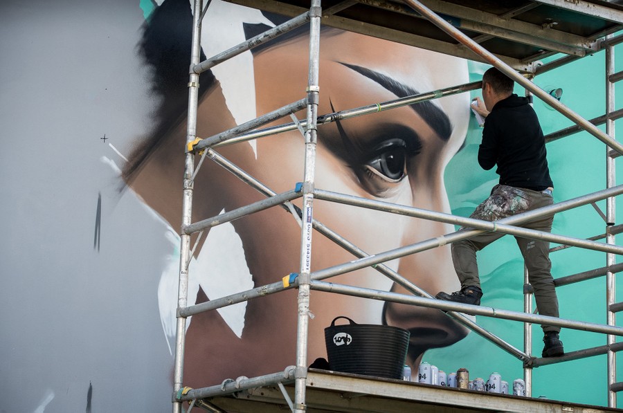Read moreFinishing touches are put on an art piece on the final day of 'Upfest,' Europe's largest street art festival on July 31, 2017 in Bristol, England. The annual event, in the hometown of guerrilla artist Banksy, started in 2008 and is now Europe's biggest street-art festival, attracting more than 350 artists from across the globe to live paint on walls and surfaces in 37 locations around Bedminster and Southville over three days. #