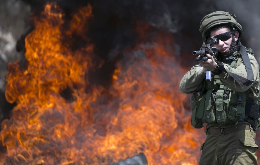 Read moreAn Israeli soldier takes aim during clashes with Palestinian demonstrators following a demonstration against the expropriation of Palestinian land by Israel in the village of Kfar Qaddum, near Nablus in the occupied West Bank, on August 11, 2017. #