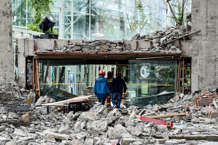 Read moreThis photo taken on August 10, 2017 shows rescuers walking through the damaged InterContinental Resort Jiuzhai Paradise in Jiuzhaigou in China's southwestern Sichuan province, after a 6.5-magnitude earthquake struck the province late on August 8. China on August 10 ramped up its response to an earthquake that killed 20 people and injured hundreds, sending supplies and personnel into the mountainous zone as rescuers fanned out to search for more victims. #