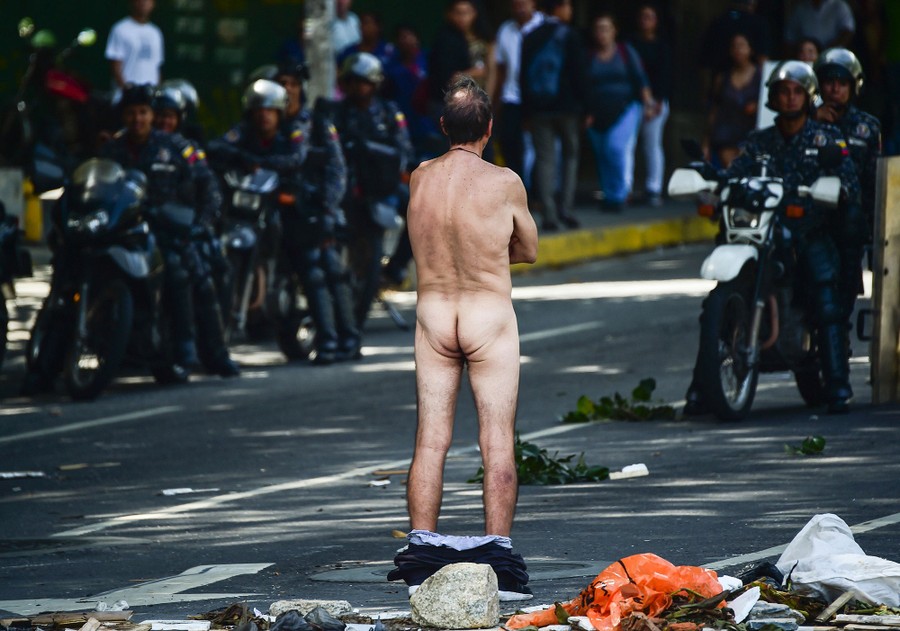 Read moreAn anti-government activist stands in front of security forces with his trousers down at a barricade set up on a street of Caracas to protest against Venezuelan President Nicolas Maduro, on August 8, 2017. Recent demonstrations in Venezuela have stemmed from anger over the installation of an all-powerful Constituent Assembly that many see as a power grab by the unpopular President Maduro. The dire economic situation also has stirred deep bitterness as people struggle with skyrocketing inflation and shortages of food and medicine. #