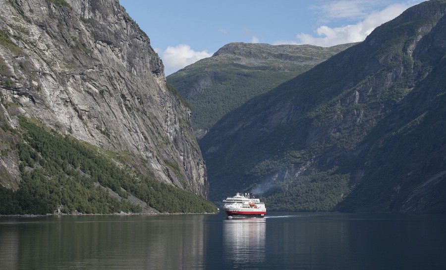 Read moreA passenger ferry with tourists in Geirangerfjord on August 7, 2017 in Stranda, Norway. The Geiranger Fjord is one of the most visited fjords in Norway and one of the most visited tourism sites. In 2005 it was listed as a UNESCO World Heritage Site. #