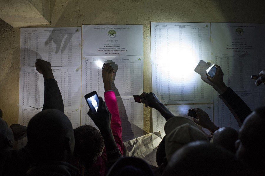 Read morePeople check names on a voter registration list at the Olympic Primary School in Kibera, one of the largest slums in Africa, on August 8, 2017 in Nairobi, Kenya. Kenyans headed to the polls for a closely contested election between incumbent president Uhuru Kenyatta and his rival Raila Odinga. #