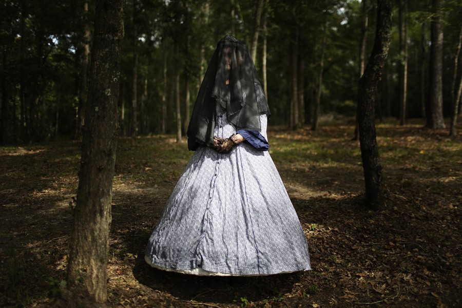Read moreAllie Chastka, a reenactor, poses for a portrait while covering her face with a black veil after the unveiling of a Confederate monument called "Unknown Alabama Confederate Soldiers" in the Confederate Veterans Memorial Park in Brantley, Alabama, on August 27, 2017. #