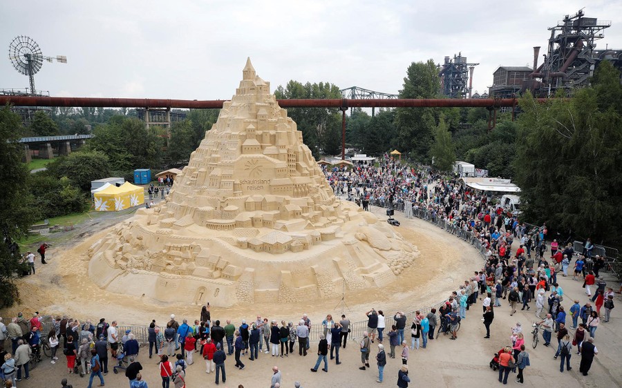 Read morePeople stand around the world's highest sand castle before a judge from Guinness World Records confirmed the new record height of 16.68 meters, in Duisburg, Germany, on September 1, 2017. #