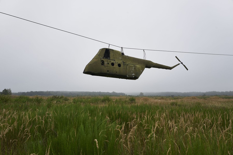 Read moreA discarded helicopter hanging on a wire is used for training Ukrainian servicemen at the Yavoriv training center on August 29, 2017, in Starychi, Ukraine. The center, located near the Polish border in western Ukraine, is the largest in Europe. #