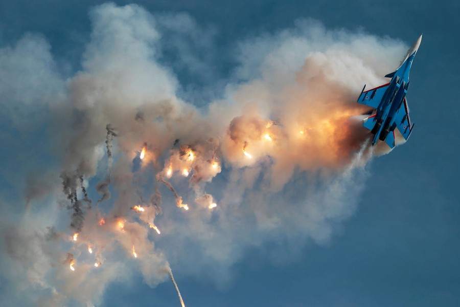 Read moreA Sukhoi Su-30SM fighter of the Russkiye Vityazi (Russian Knights) aerobatic team performs at the ARMY 2017 International Military-Technical Forum at the Kubinka airbase outside Moscow, Russia, on August 27, 2017. #
