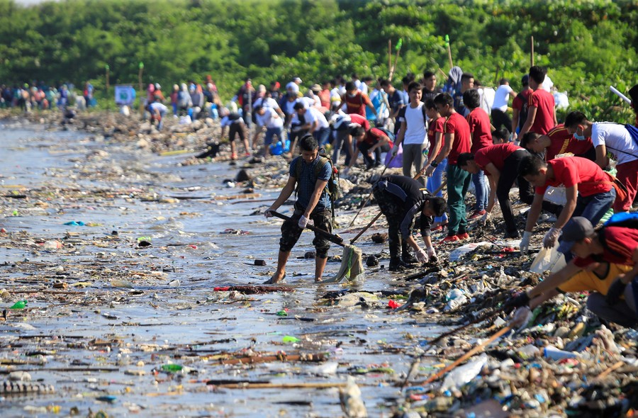 Read moreVolunteers collect garbage along the coast of Manila bay during the annual International Coastal Cleanup Day in Paranaque city, Metro Manila, Philippines, on September 16, 2017. #