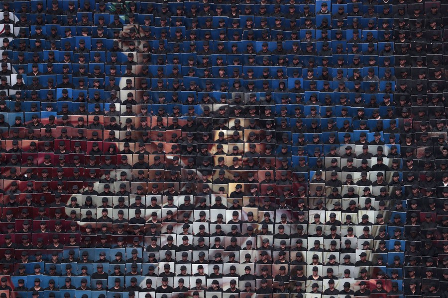 Read moreHundreds of soldiers hold placards to create a mosaic of Petronilo Monroy's allegorical figure La Constitucion, during the annual Independence Day military parade in Mexico City's main square, on September 16, 2017. Mexico is marking the 207th anniversary of its independence from Spain. #