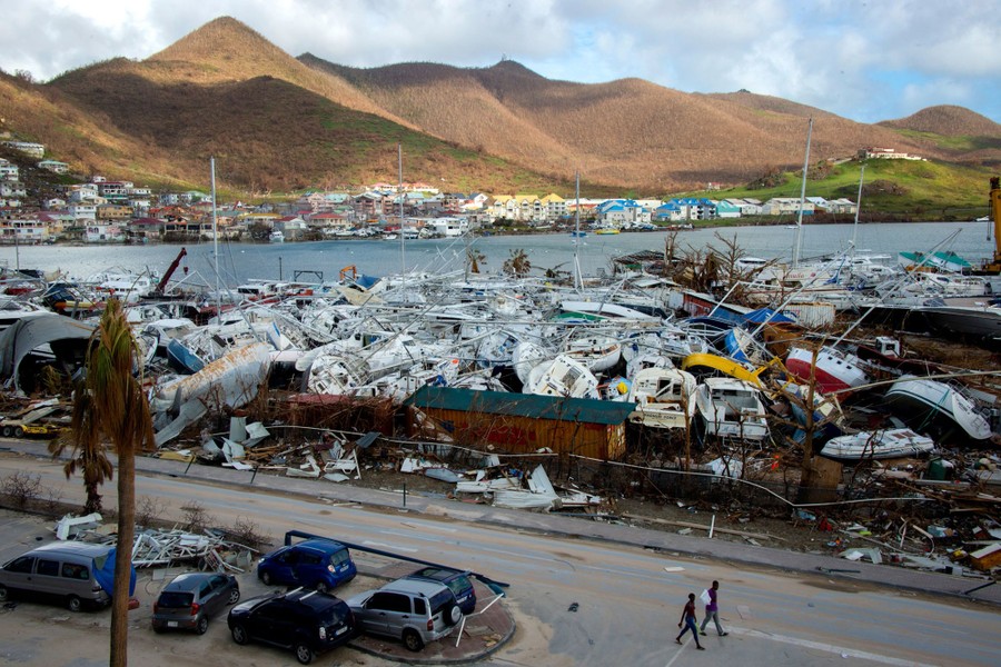 Read morePeople walk past smashed boats on September 16, 2017, at Marigot shipyard on the French Caribbean island of Saint Martin after the island was hit by Hurricane Irma. The Caribbean island of St. Martin was a place of spectacular inequalities before Hurricane Irma flattened rich and poor neighborhoods alike—but some residents now dream of a fresh start. Ten days after the storm devastated the island, cleaning up and reconstruction remain a priority for St. Martin, although repairing roads and buildings before the high season, which usually starts in November and runs until April, seems nearly impossible. #