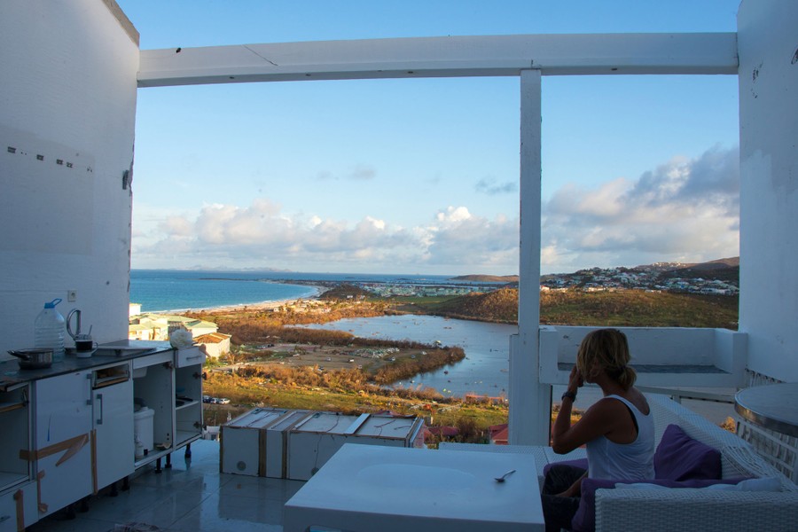 Read moreA photo taken on September 17, 2017, shows a woman sitting in a room without a roof or windows at the Alizea residence in Mont Vernon, on the French Caribbean island of Saint Martin, after the passage of Hurricane Irma. Almost two weeks after Hurricane Irma slammed into St. Martin, killing 15 people, the French-Dutch Caribbean island has begun to take small steps toward reconstruction. Out on the roads, soldiers and volunteers work side by side to clear debris clogging the streets, stocking branches, metal sheets, and other rubble in long piles along the embankment. #