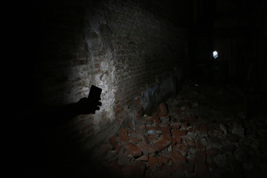 Read moreA resident uses a cell phone light to show a pile of fallen brick inside an earthquake damaged building in the Roma neighborhood of Mexico City on September 20, 2017. The fifteen families who lived in the building are either camping out front or have gone to stay with relatives after they say inspectors declared it unsafe. Pointing to decades of neglect by the building's rental corporation, they say they will camp out indefinitely, insisting that the government recognize their rights to the property and provide them a suitable place to live. #