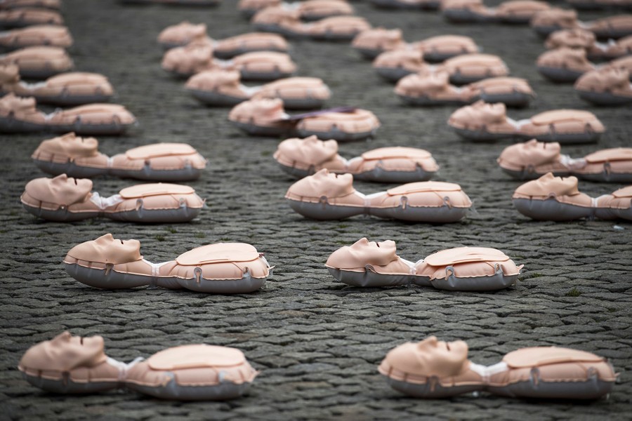 Read moreResuscitation mannequins lie arranged in a square prior to a resuscitation course and contest attended by German Chancellor Angela Merkel, organized by the medical university in Greifswald, Germany, on September 23, 2017. #