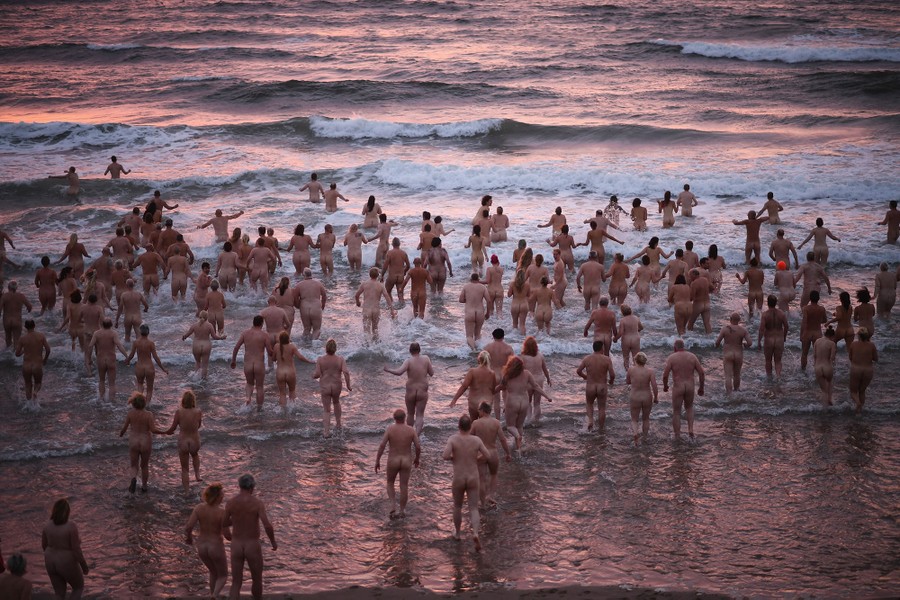 Read moreNaked bathers enter the water as they take part in the North East Skinny Dip at Druridge Bay on September 25, 2017, in Druridge, England. The popular annual event takes place around the autumn equinox at Druridge Bay as the sun rises. #