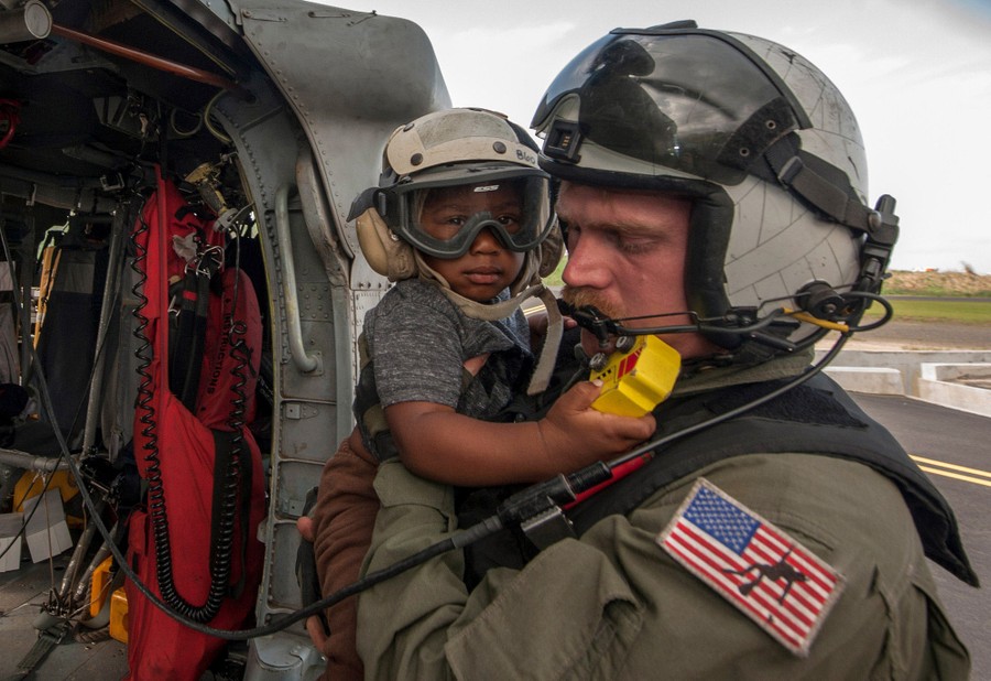 Read moreNaval Aircrewman (Helicopter) 2nd Class Brandon Larnard, assigned to Helicopter Sea Combat Squadron, carries an evacuee off an MH-60S Sea Hawk helicopter following the landfall of Hurricane Maria on the island of Dominica on September 27, 2017. #