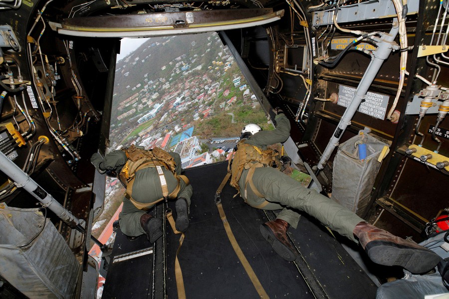 Read moreMarine air crewmen inspect a landing site from the rear bay door of an MV-22 Osprey carrying medical personnel as it prepares to land on St. Thomas, U.S. Virgin Islands, on September 22, 2017. #