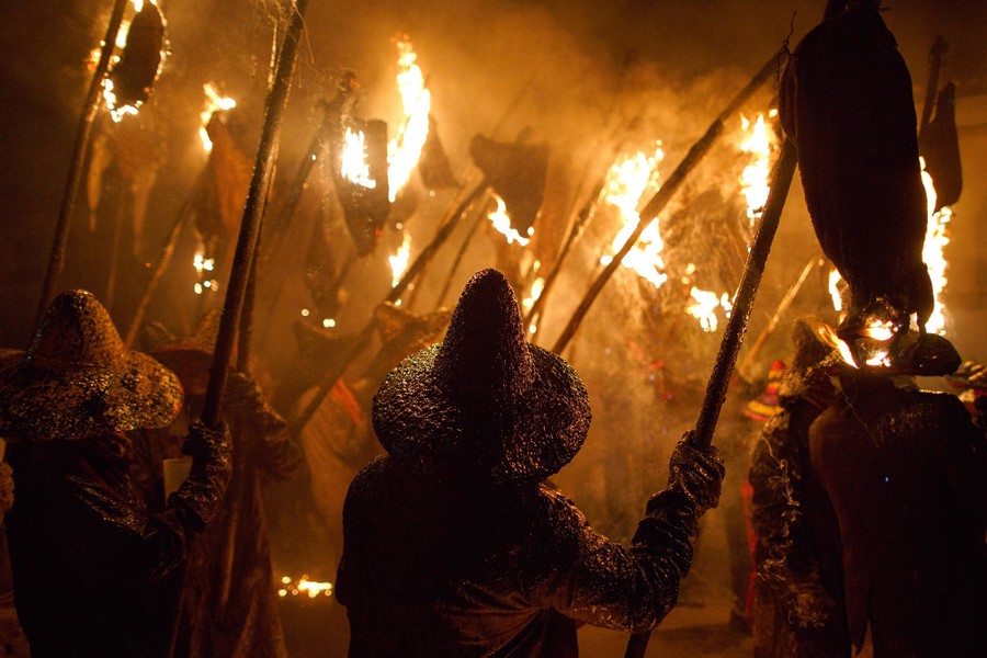 Read moreVillagers hold torches made of wine skins during the El Vitor civic procession on September 27, 2017, in Mayorga, Valladolid Province, Spain. Every September 27th, Mayorga villagers commemorate the arrival of Santo Toribio de Mongroviejo's relics to his birthplace. The tradition dates back to 1752 when villagers took to the streets with torches at night to receive the Saint's relics arriving from Latin America. #