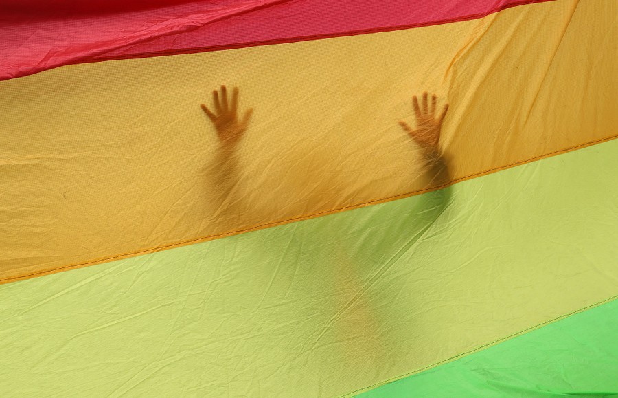 Read moreA demonstrator who is a supporter of gay marriage tries to stabilize a giant rainbow flag against the wind during a counter-protest on September 15, 2017, in Berlin, Germany. Approximately 200 people who support gay marriage protested against a gathering of about two dozen supporters of "Demo fuer Alle" (Demonstration for All) who had arrived by bus near the Chancellery to demonstrate for traditional marriage between a man and a woman. Germany recently legalized gay marriage. #