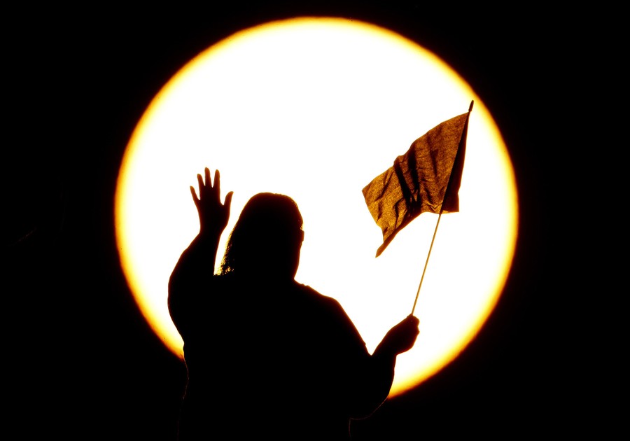 Read moreA woman is silhouetted by the setting sun as she waves to passing motorists below an overpass on Interstate 35 near Melvern, Kansas, on September 11, 2017. She had gathered with others to remember the anniversary of the September 11, 2001, terrorist attacks. Area residents began manning the bridge with flags and waving to motorists on the anniversary in 2002 and have done it every since drawing about 300 people throughout the day. #