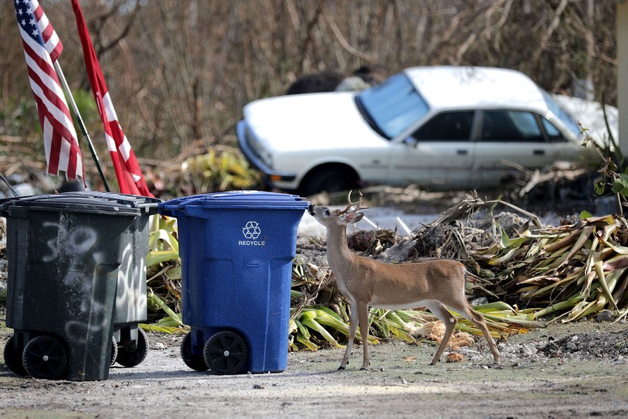 Read moreA native key deer looks for food among the ruins left by Hurricane Irma in the Port Pine Heights neighborhood on Big Pine Key, Florida, on September 14, 2017. Many places in the Keys still lack water, electricity, or mobile phone service and residents are still not permitted to go further south than Islamorada. #