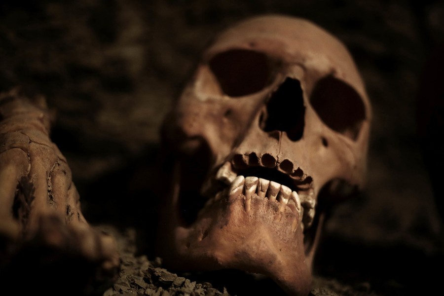 Read moreA skull found in the New Kingdom tomb that belongs to a royal goldsmith in a burial shaft, in Luxor, Egypt, on September 9, 2017. Egypt has announced the discovery in the southern city of Luxor of a pharaonic tomb belonging to a royal goldsmith who lived more than 3,500 years ago during the reign of the 18th dynasty. #