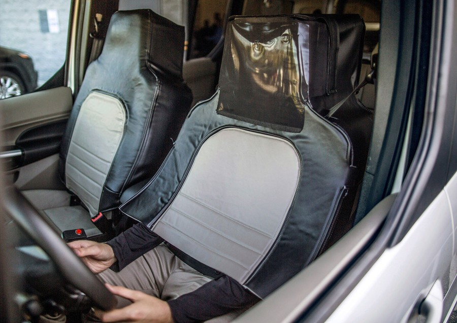 Read moreA simulated self-driving vehicle using a “seat suit” to conceal the human driver, made by the Ford Motor Company. This was done to explore pedestrian reaction to external lighting signals that indicate when the vehicle is driving, yielding or accelerating from a stop, in Arlington, Virginia, in this handout photo obtained by Reuters on September 13, 2017. #