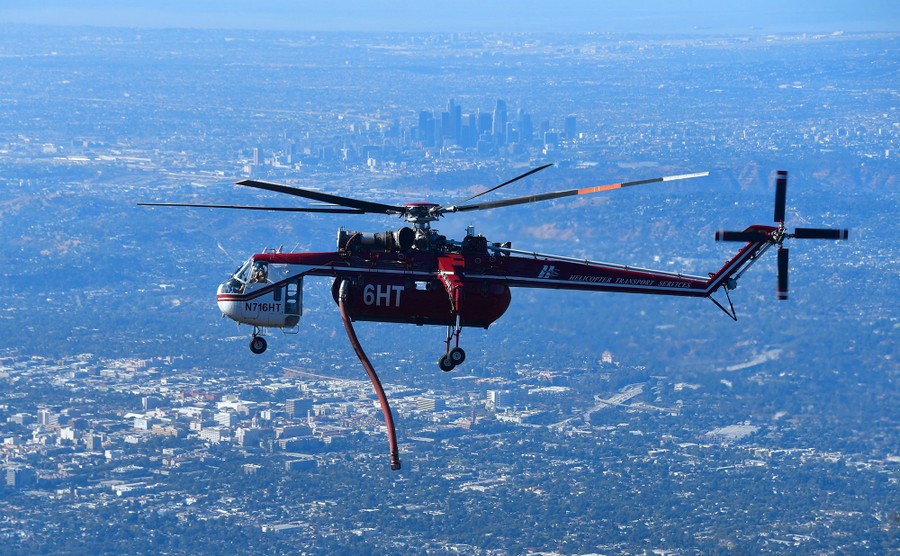 Read moreA helicopter flies over Los Angeles to a fire in the Angeles National Forest near Mt. Wilson Observatory, northeast of Los Angeles, California, on October 17, 2017, overlooking the San Gabriel Valley. The brush fire in the mountains broke out before dawn blackening about 30 acres and was 5 percent contained as of 10 a.m., according to the Los Angeles County Fire Department. #
