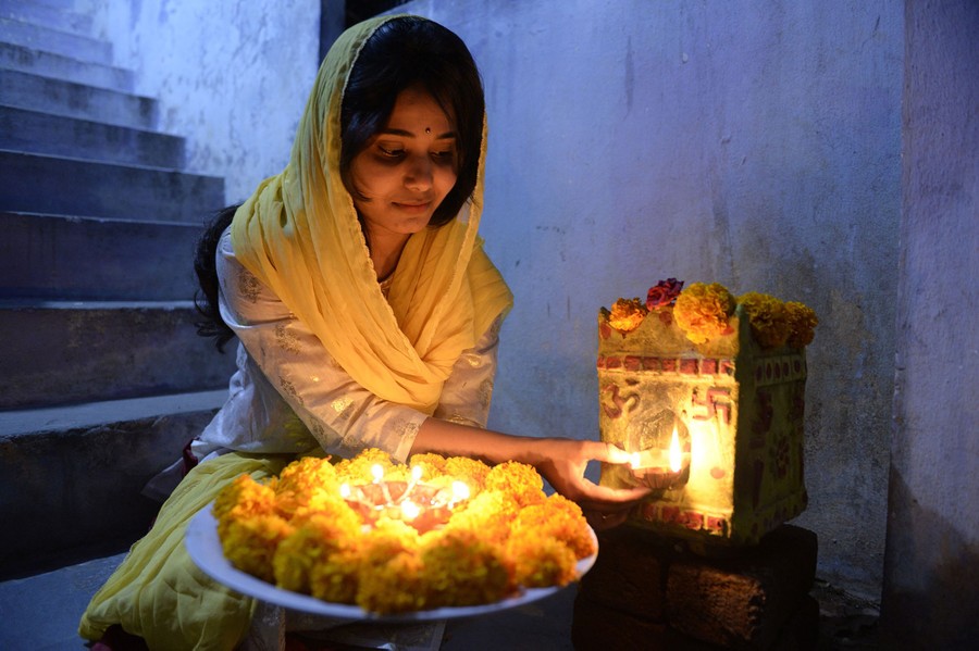 Read moreAn Indian woman named Rishitha places earthen lamps or "diyas" in her home on the eve of the Diwali Festival in Hyderabad, India, on October 18, 2017. Diwali, the Hindu festival of lights, marks the triumph of good over evil, and commemorates the return of Hindu deity Rama to his birthplace Ayodhya after victory against the demon king Ravana. #