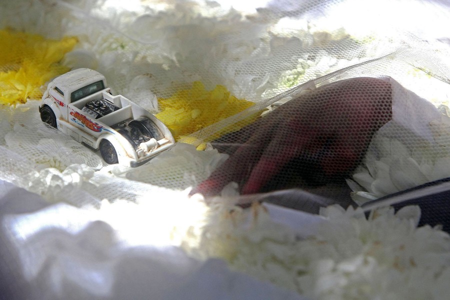 Read moreA toy car is placed in the coffin of Juan Miguel Soares Silva, 4, one of the victims of the recent municipal daycare center attack, during his burial at Saint Luke's cemetery in Janauba, Minas Gerais state, Brazil, on October 6, 2017. A Brazilian nursery school guard sprayed children with alcohol and set them on fire, killing six small children and a teacher on Thursday in an attack which horrified the nation. #