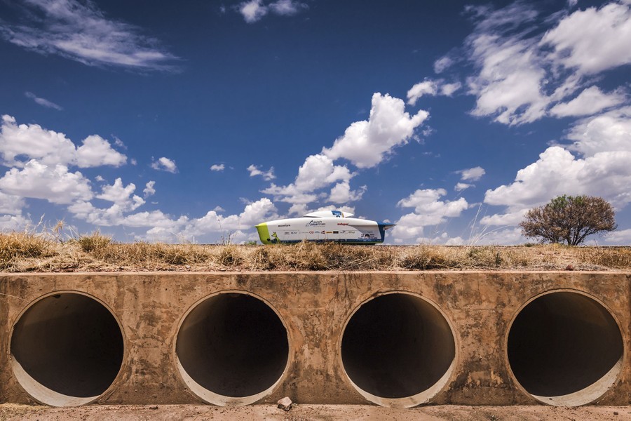Read moreThe Punch Powertrain Solar Team car from Belgium competes during the second race day of the 2017 World Solar Challenge in Daly Waters, Australia, on October 9, 2017. 42 solar cars from 21 different countries are participating in a 3,000 km race from Darwin to Adelaide. #