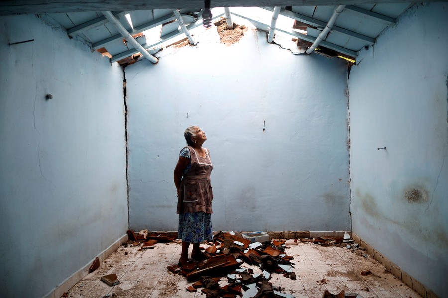 Read moreTomasa Mozo, 69, a housewife, looks up at the roof as she poses for a portrait inside the ruins of her house after an earthquake in San Jose Platanar, Mexico, near the epicenter, on September 28, 2017. The house was badly damaged but with the help of her family Mozo rescued some furniture. She lives in another room of her house and hopes to repair the damage as soon as possible. "I'm afraid to go out, I cannot sleep," Mozo said. #