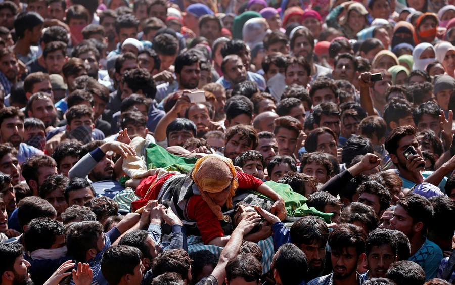 Read moreA woman clings to the body of Nasrullah Mir, a suspected militant, who according to the local media was killed during a gun battle with Indian security forces in the Hajin area of Bandipora district, Kashmir, on October 11, 2017. #